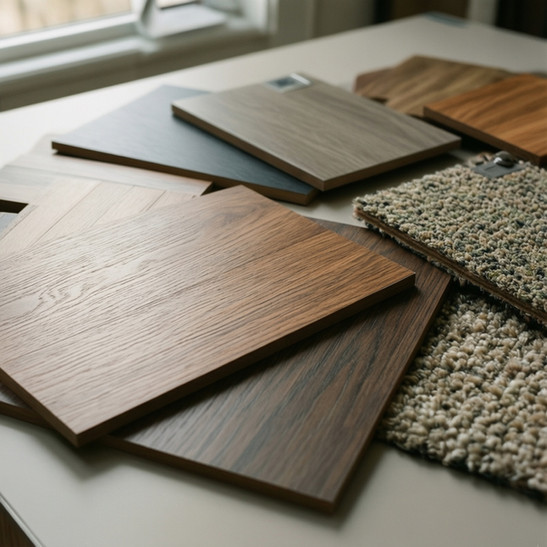 Illustration der mobilen Beratung mit Musterkollektionen direkt beim Kunden zuhause. Der Fokus liegt auf der schnellen und unkomplizierten Angebotserstellung vor Ort, ohne lange Wartezeiten.